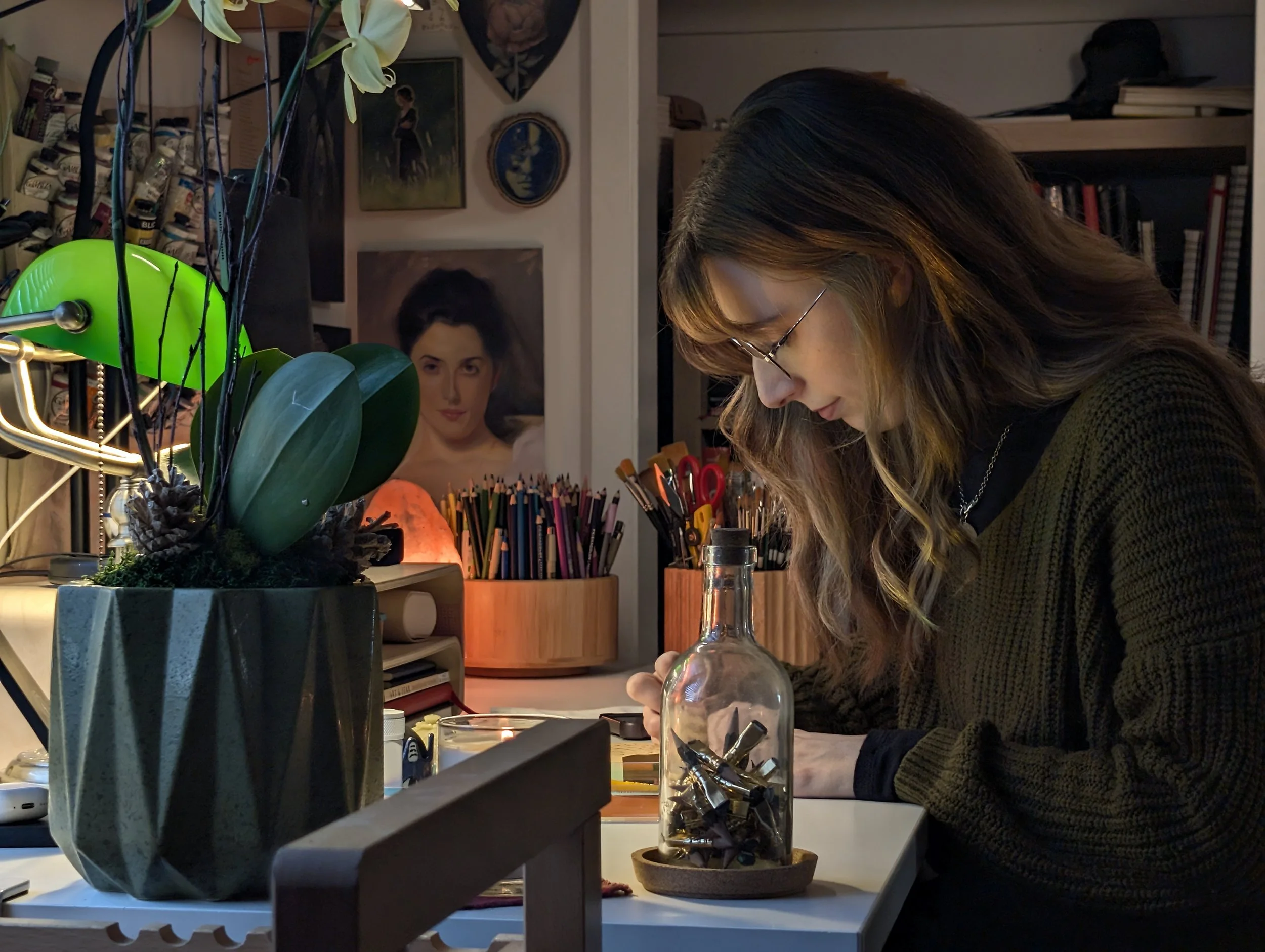 I am a fine artist and illustrator born and raised in Utah. My work is a blend of semi-realistic imagery and fantastical elements, brought to life with acrylic and oil paint. I am deeply inspired by the magic of nature and am so lucky to be surrounded by such a beautiful landscape. My art seeks to reflect my enchantment with the natural world and the unseen magic that surrounds us.